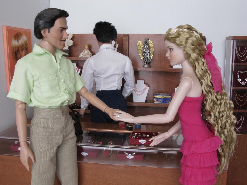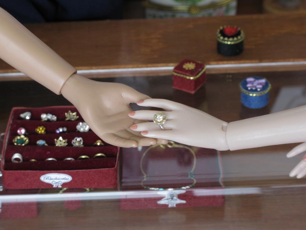 prsteny a vybírá ten nejkrásnější. Prodavač už šperk balí a Lili mezitím okukuje