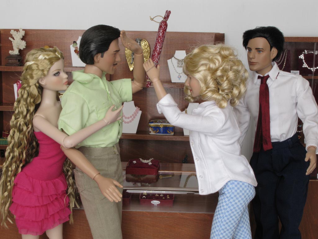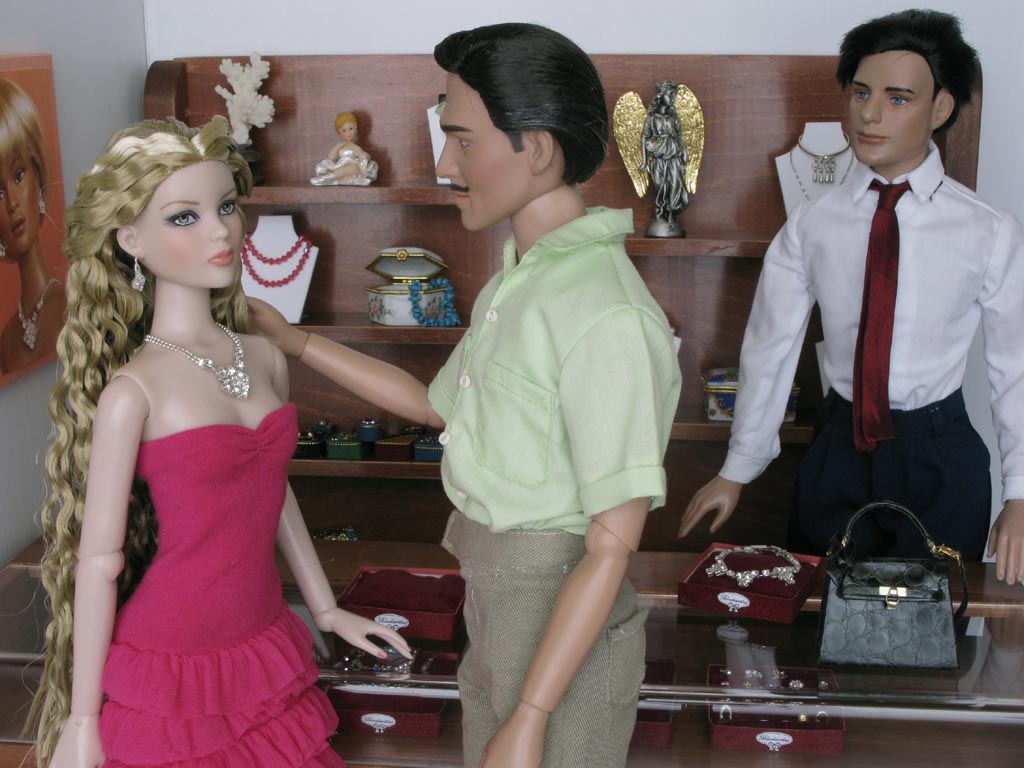 předvádí se Rudolfovi. Po dlouhém rozvažování zvolí briliantový náhrdelník s
