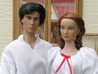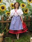 Dorotka má halenku selského střihu s bohatými rukávy, sukně je z červené