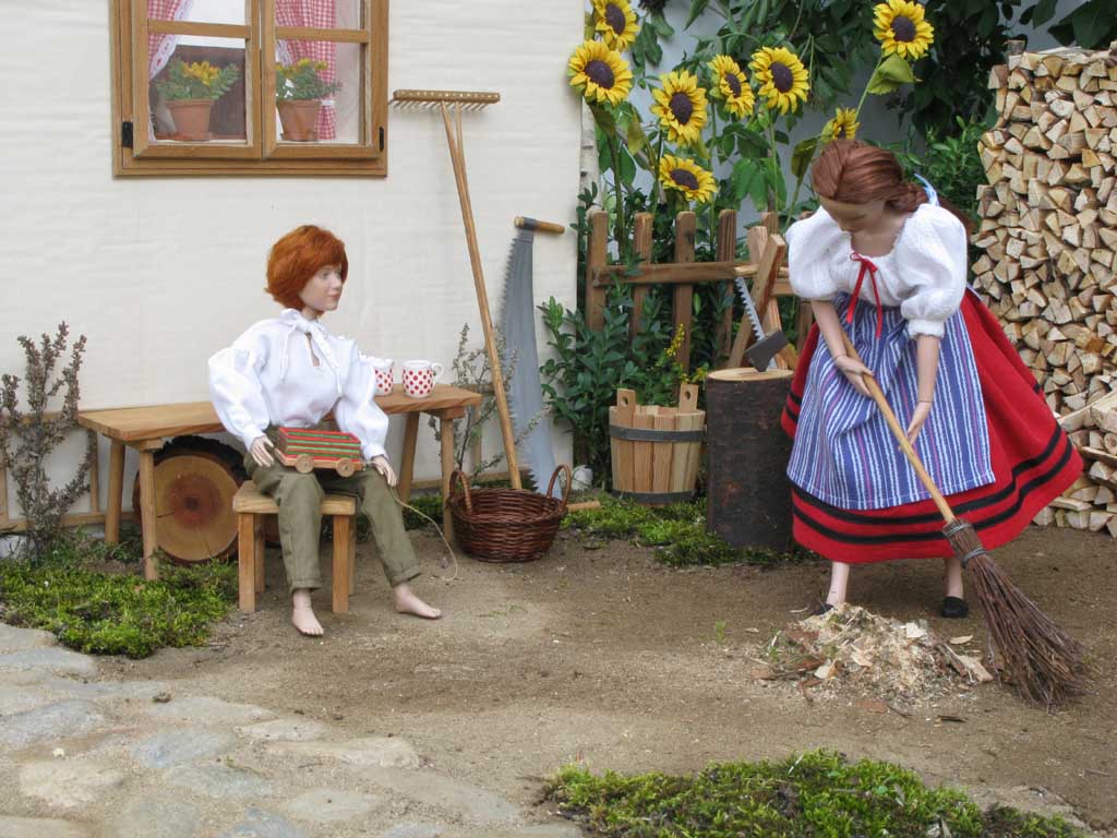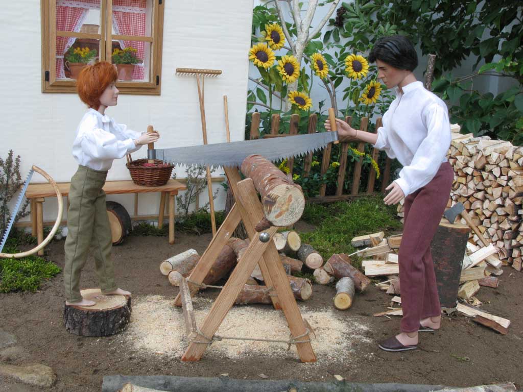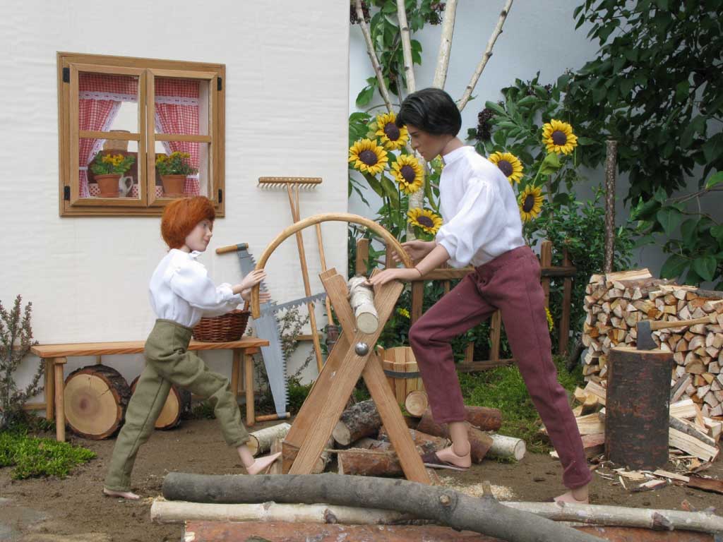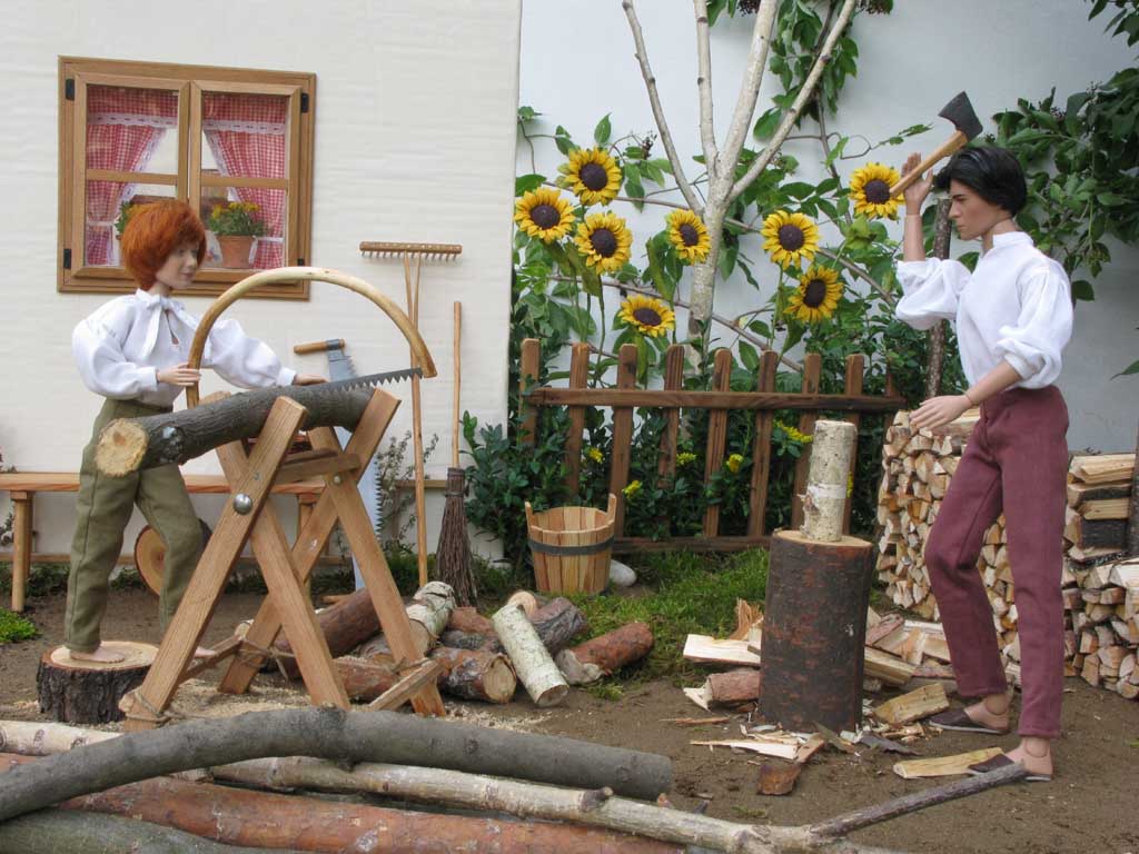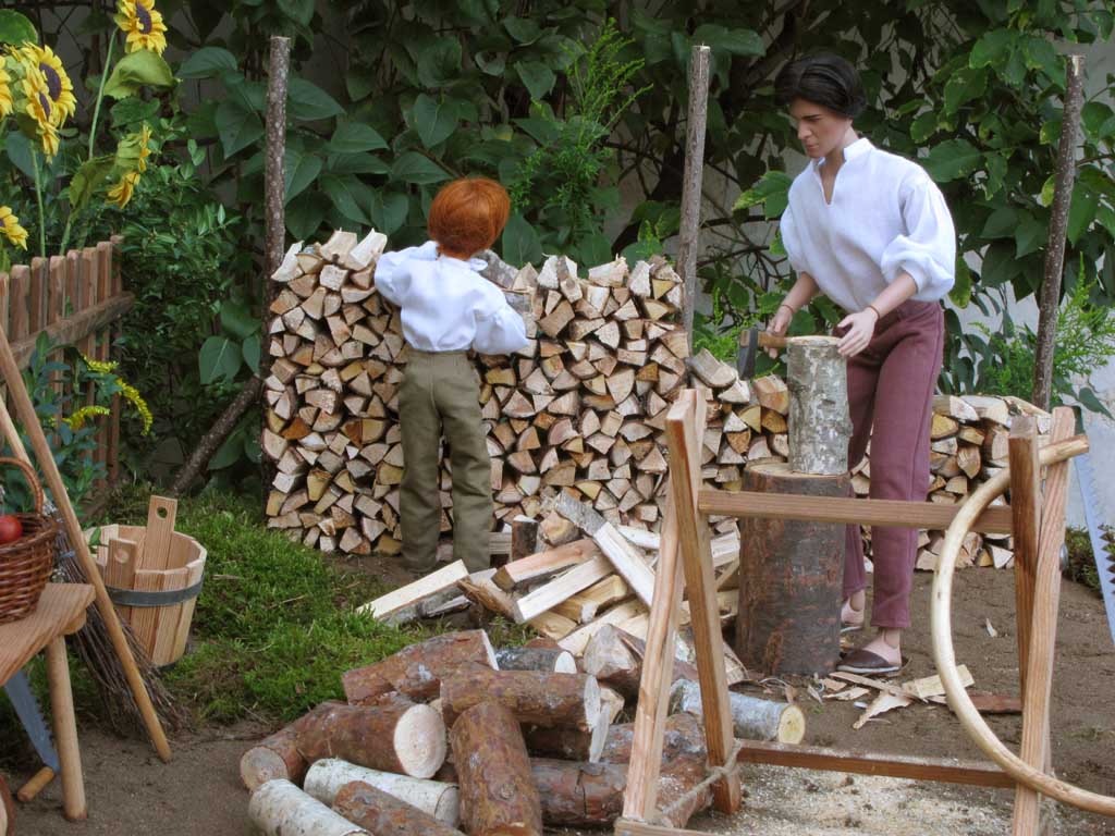 nasekaným dřevem utěšeně narůstá. Později jim přichází pomoci i Dorotka, která s
