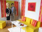 pevnější papír i dva pruhy na stěnu. Gauč i sedák jsou z polystyrénu, potažené