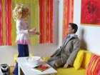 místo konání. Krátké zazvonění ji vyruší zrovna ve chvíli, kdy ještě trochu poklízí obývák.