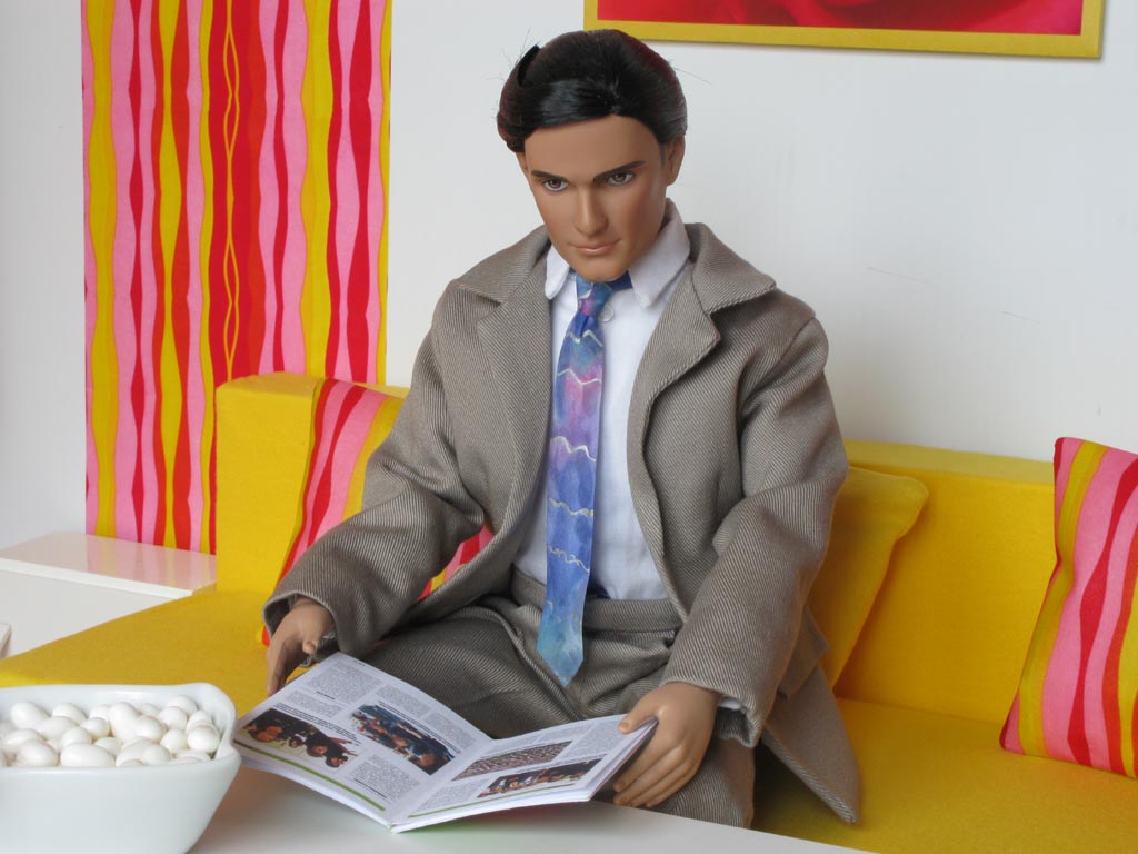 Kravata není šitá, je lepená z čistého hedvábí. Košile a boty jsou originál