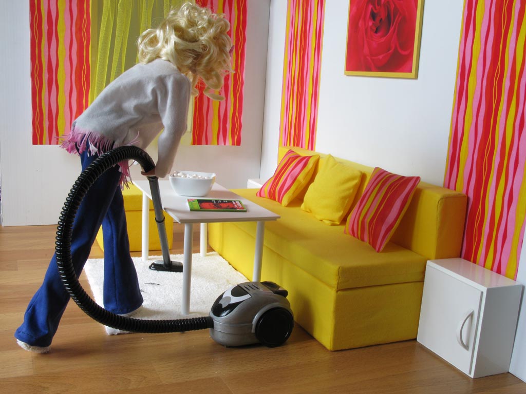 vznik téhle scénky. Původně růžový vysavač potom dobře zapadl do mých představ o