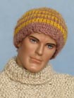 vlněný rolák s hrubším pánským vzorem a pruhatou čepici.
