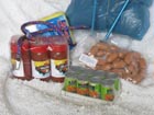 Botky má Robert kupované. Turistické hůlky jsem vyrobila z pletacích drátů,