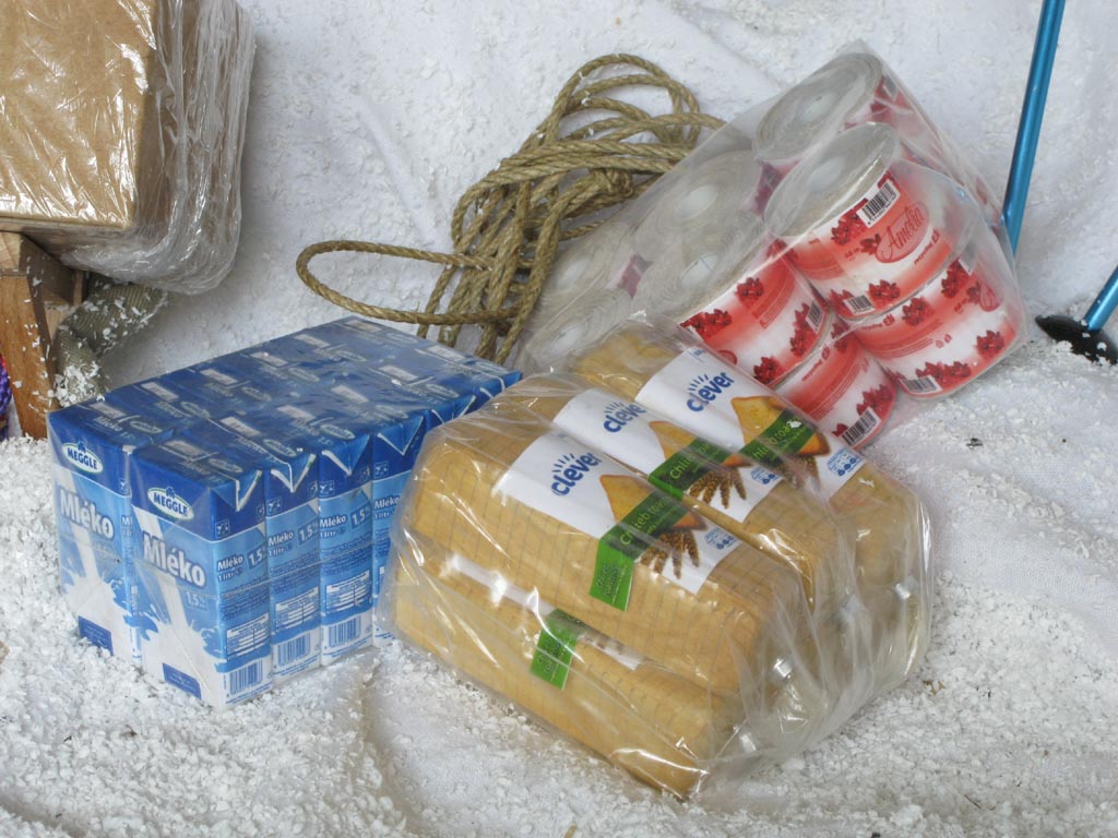 kuchyni na stole vzniklo zasněžené pohoří. Pro