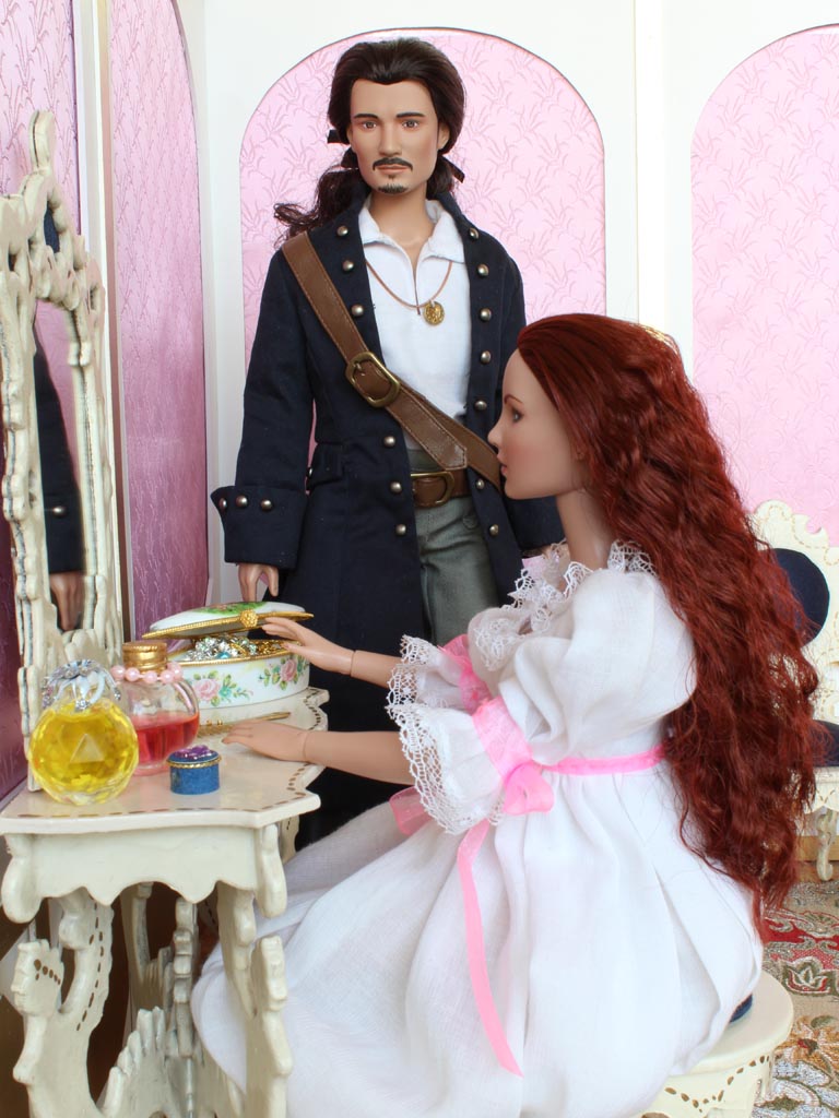 barokní scéně s dopisem, tentokrát jsem využila sofa, toaletku s taburetem
