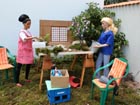 dřevěných deskách, Izabela zatím připravuje plastelínové jezírko, jehož okraj