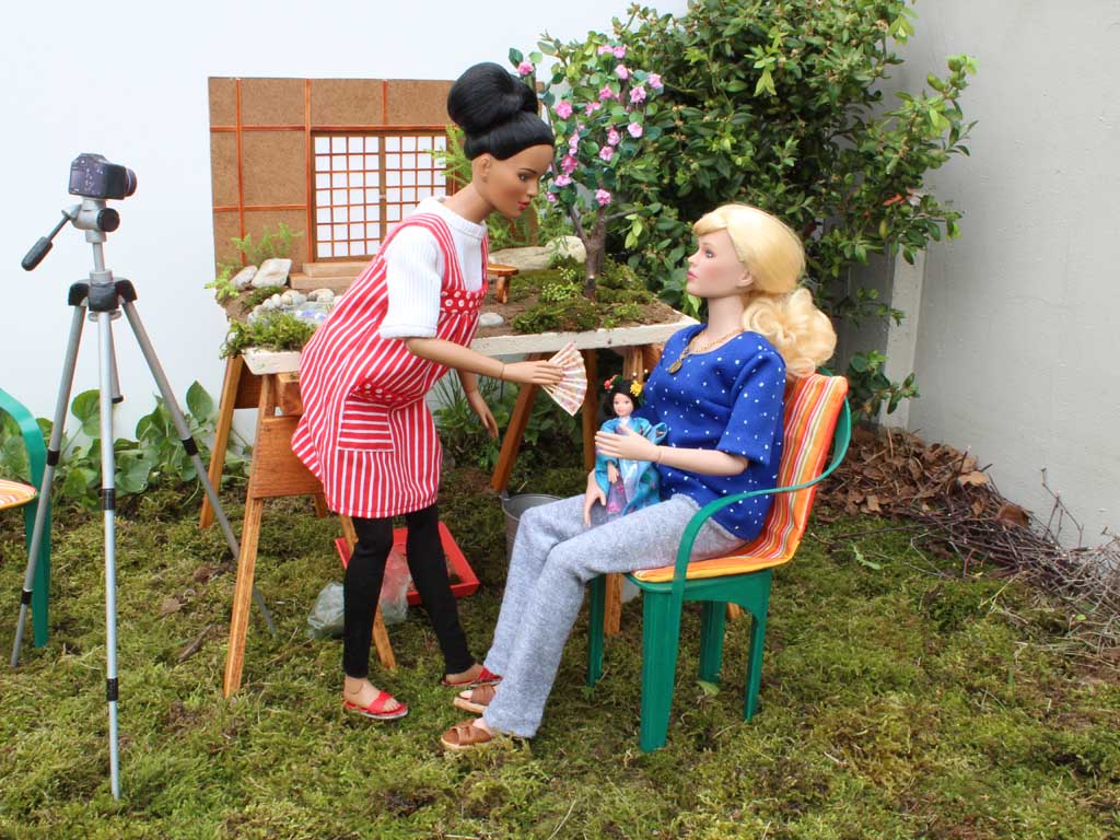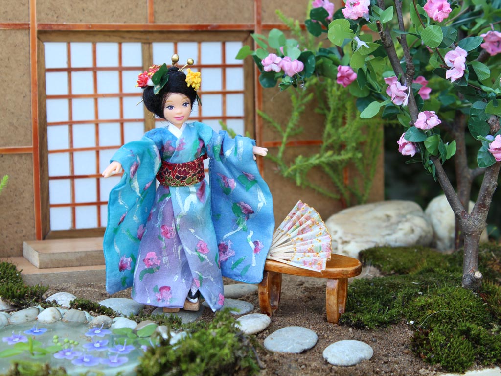 nastupuje na scénu panenka oblečená do japonského kimona. Kolem oběda si obě