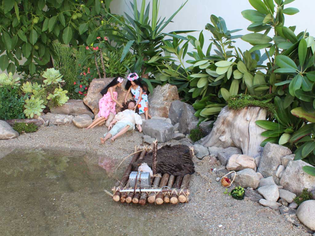 a vytvořím pláž. Pak přijdou na řadu rostliny, některé jsou v květináčích,
