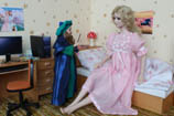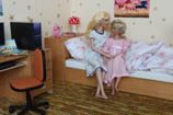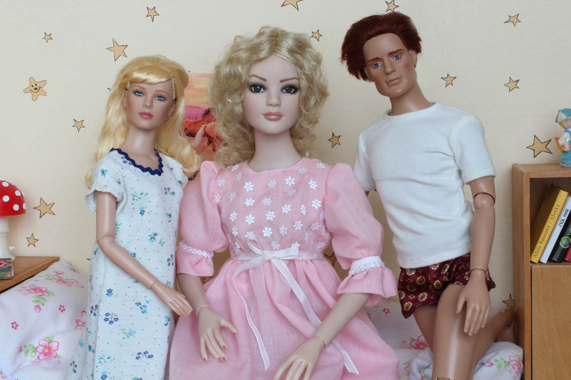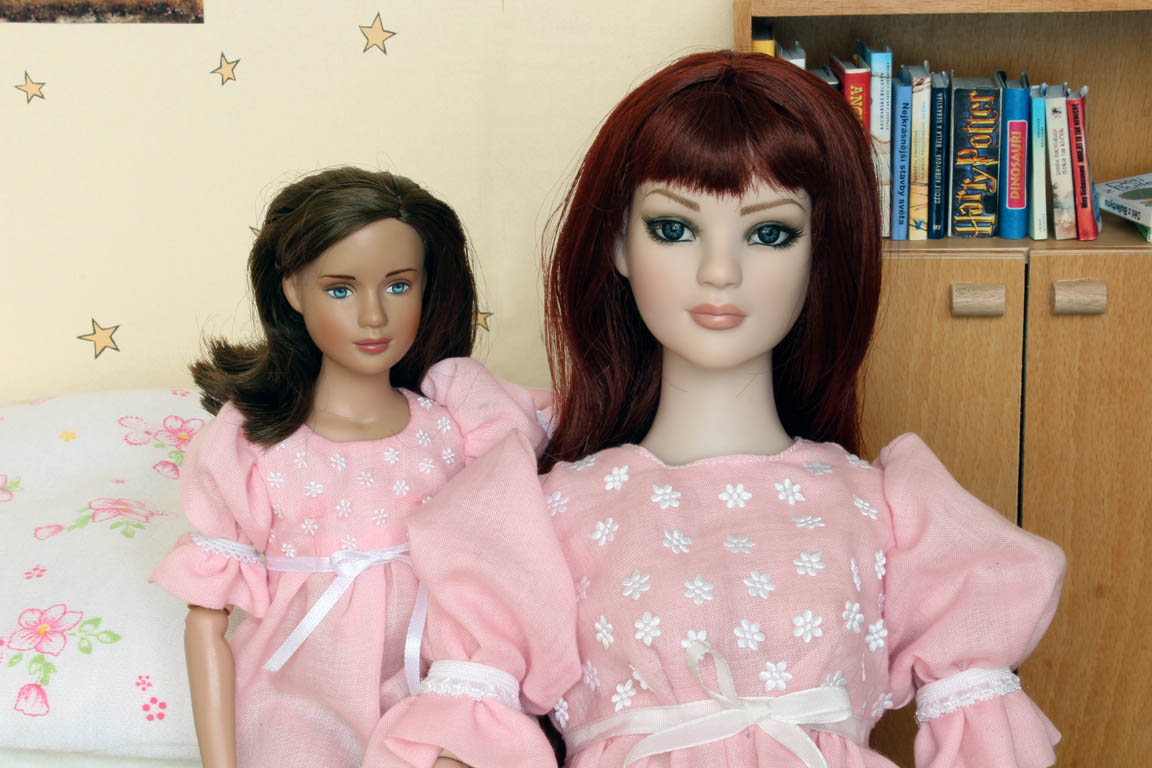 Američanka. Obě panenky využily vlnitou blond paruku,