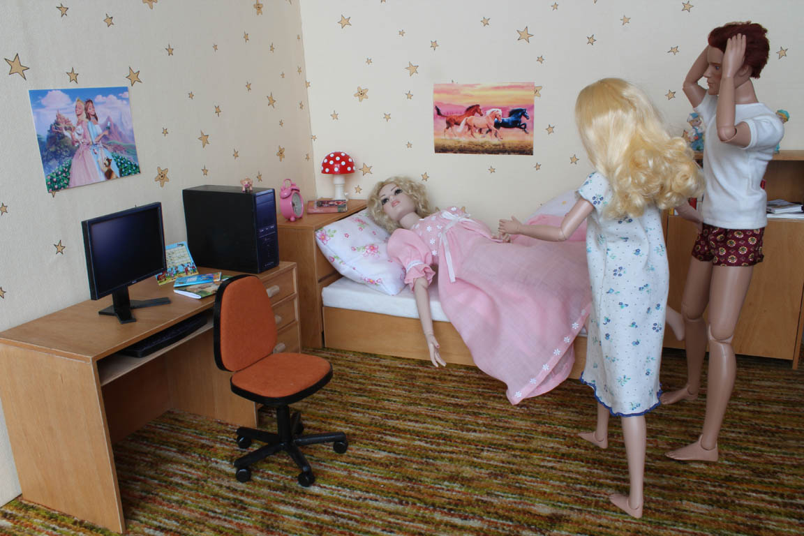 Amálka se na rodiče zlobí a je i trochu uražená. Ve svém pokoji chvíli přemýšlí,