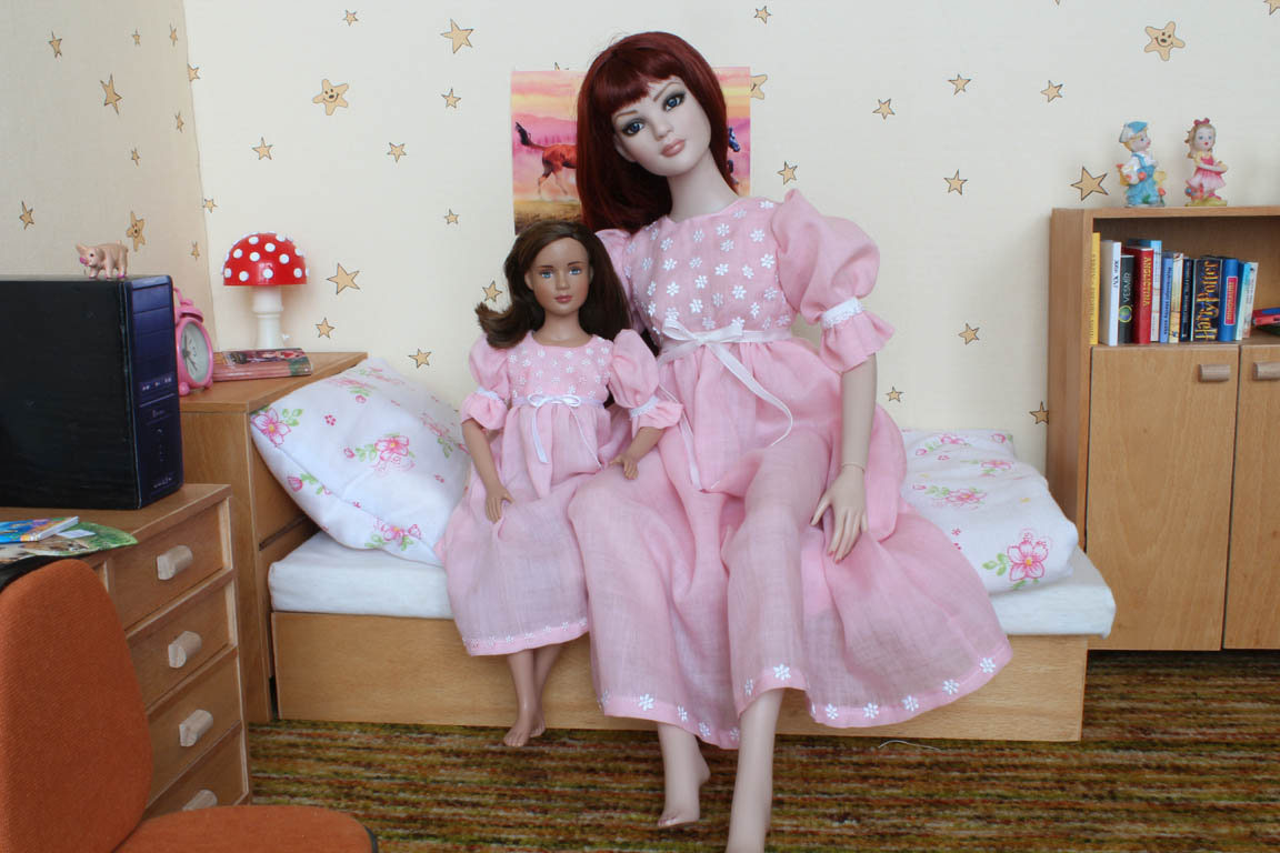 Šití bylo docela zábavné hlavně proto, že jsme obě šily stejnou věc ze stejného