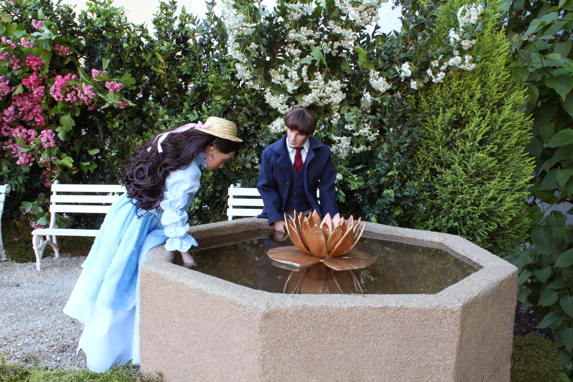 Oba si naštěstí "potřebují" opláchnou ruce v nedaleké kašně, a tak si tu vymění