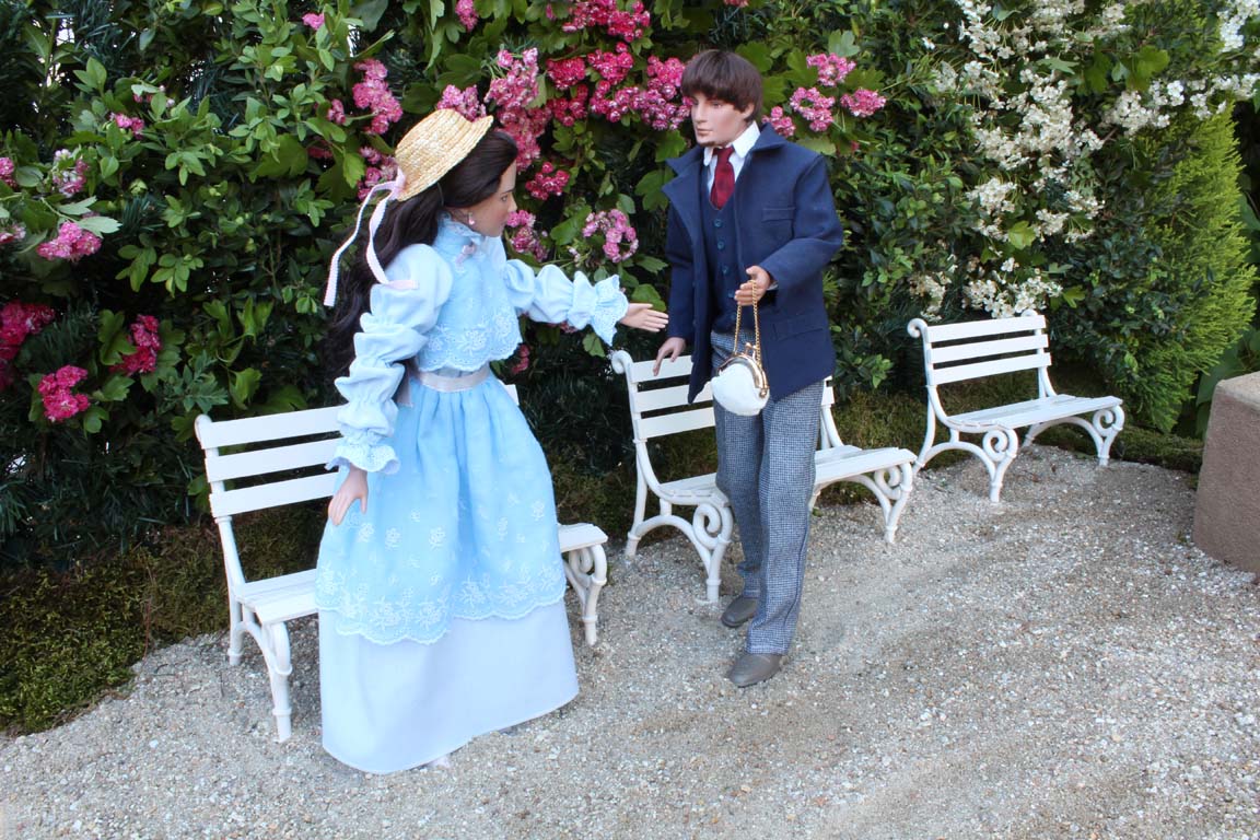 Celé dění po očku sleduje mladý muž, jenž se prochází parkem. Pokukuje po Elišce