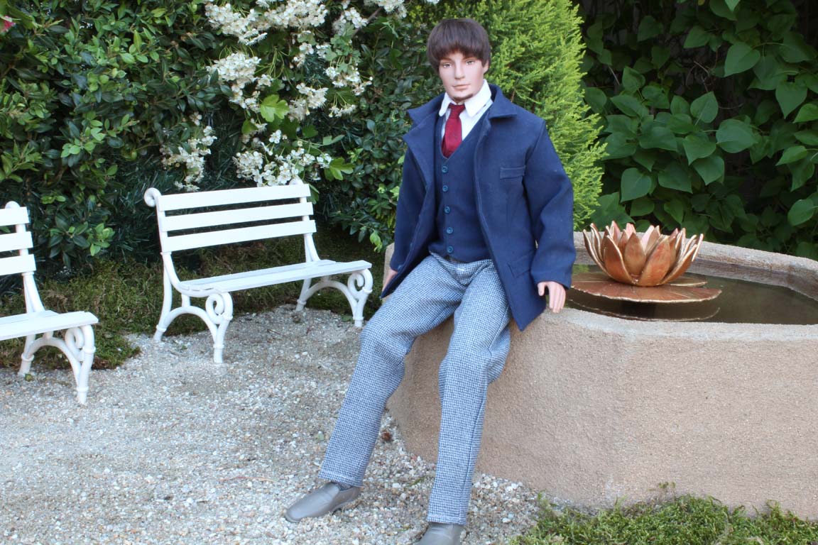 Vítka jsem ušila tmavomodré sako s vestou a šedé kalhoty s drobným vzorem.