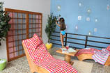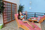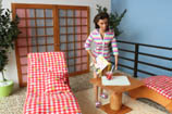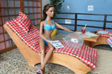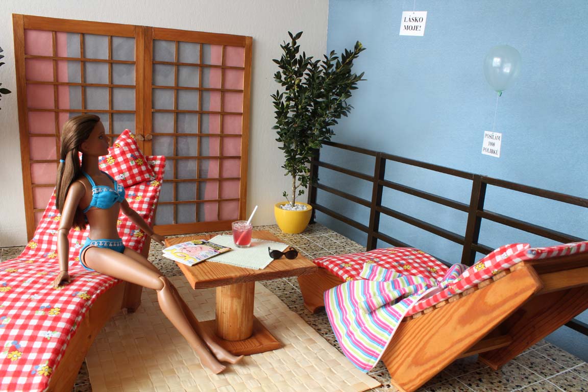 Stejná lehátka tedy existují i v našem reálném světě. Stolek je z kousku bambusu