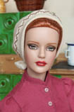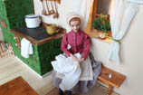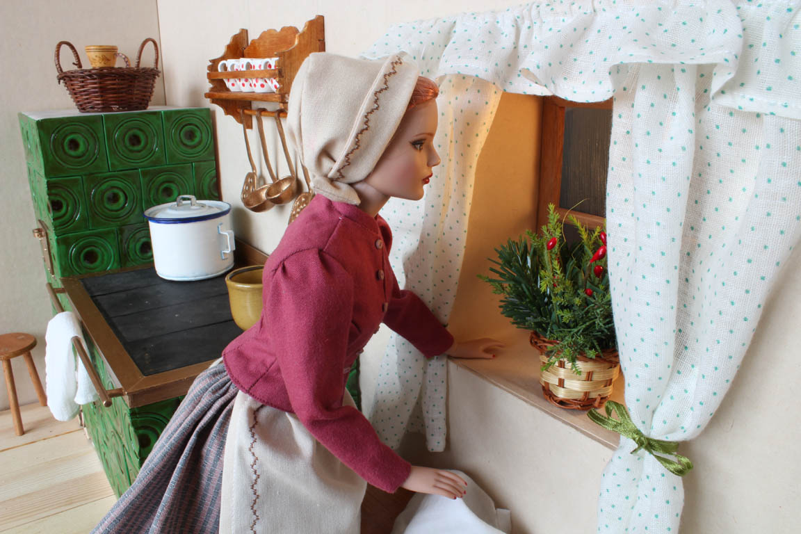 dostala zástěru a čepeček s drobnou strojovou výšivkou. Punčochy jsou z fundusu