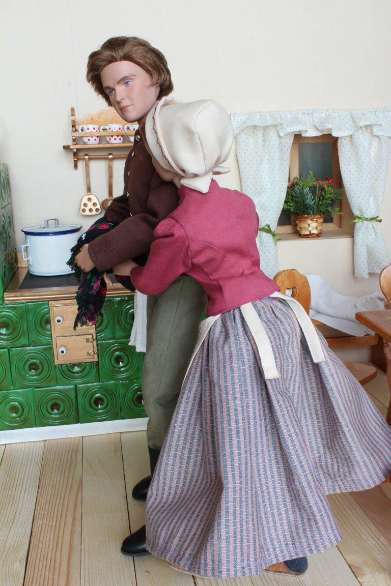 ušitou z tenkých plátěných kalhot a sukni ze staré pánské košile. Pro parádu