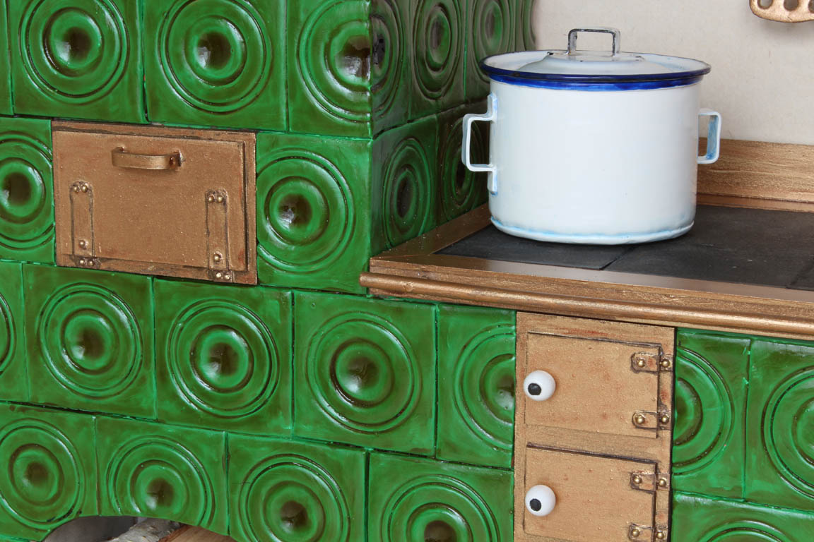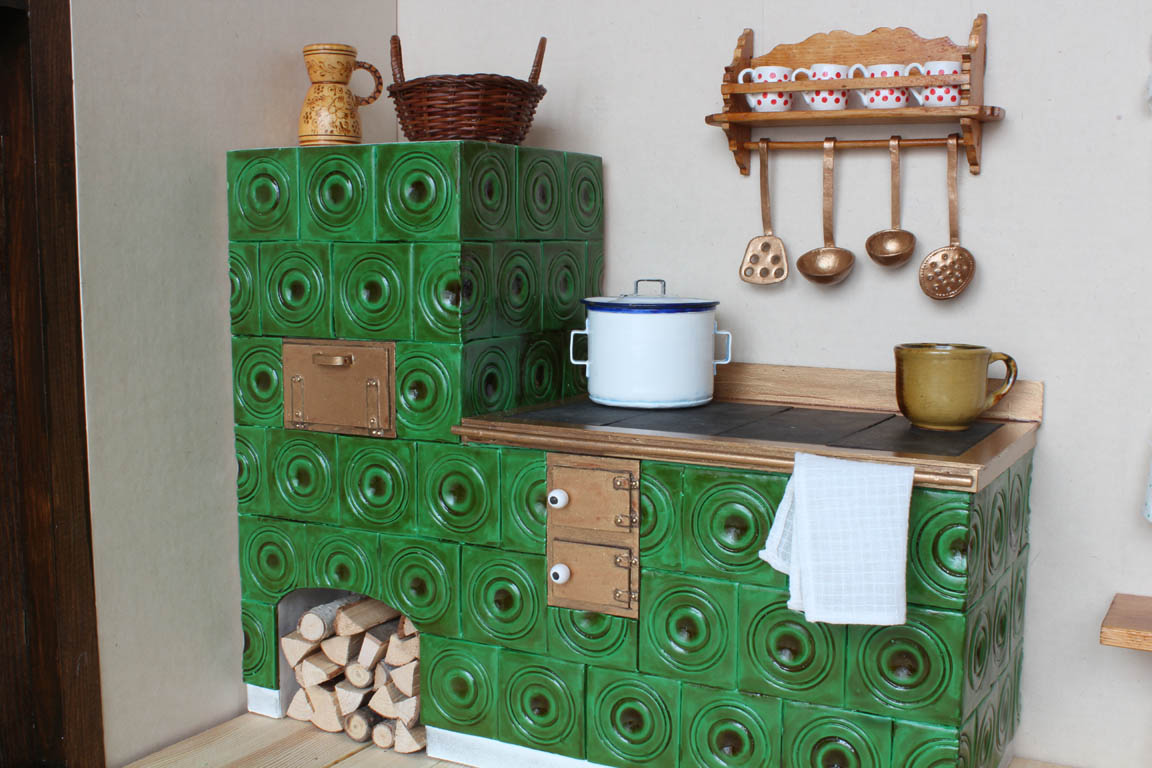 nechala volná místa pro dvířka od kamen a od trouby. Vše jsem lepila herkulesem