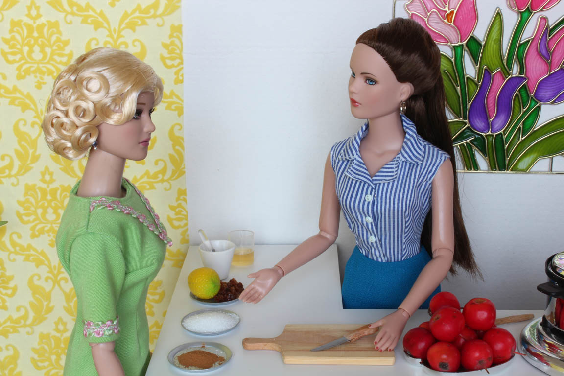 nakrájí na kostky, přidá k nim trochu citrónové šťávy, dostatek cukru,