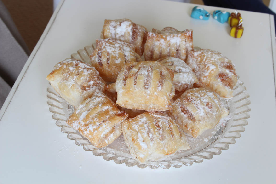 Jablka i těsto na plundry jsou skutečné a jablečnou náplň doma dělávám stejně