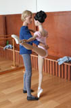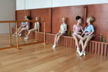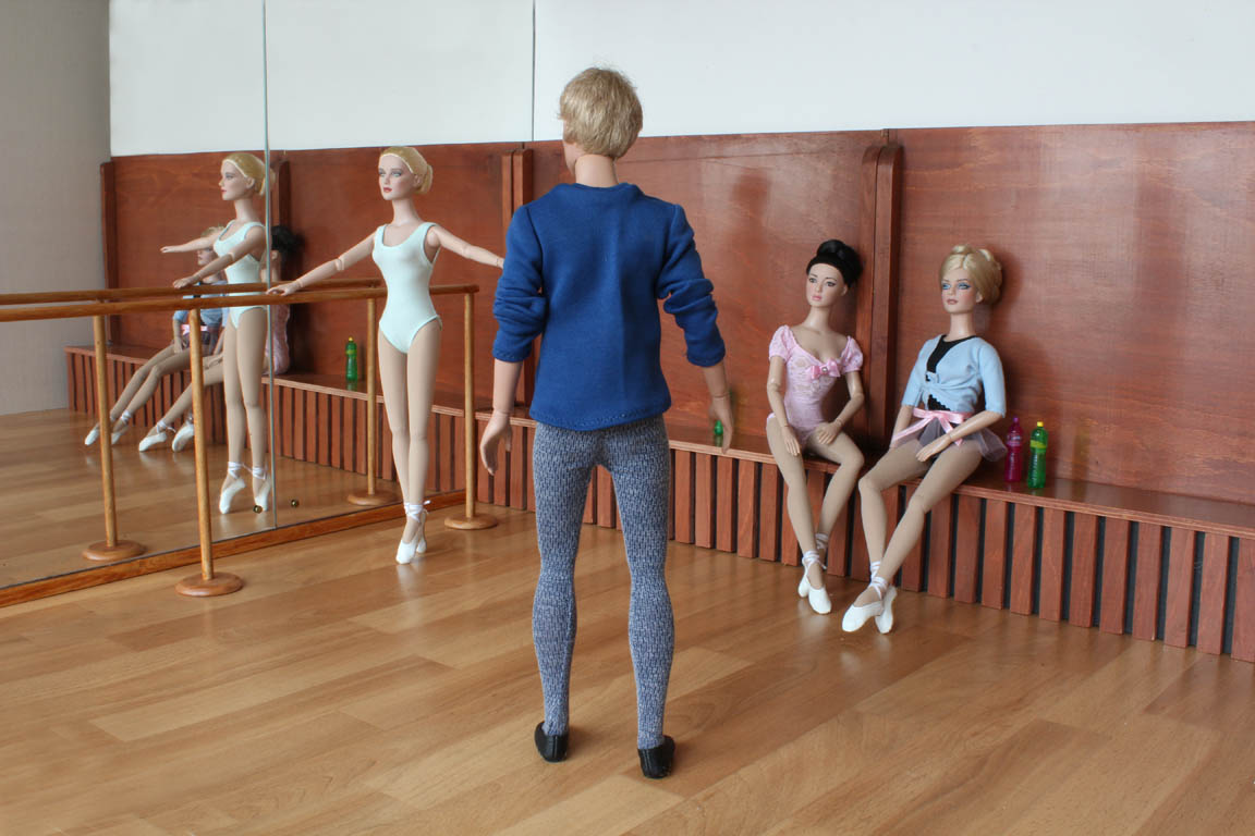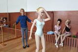 A už přichází mistr a dívky se pod jeho vedením rozcvičují u tyče. Pak sdělí