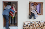pár vchází dovnitř. Nejprve zatopí v kamnech a po pár hodinách už je uvnitř