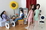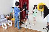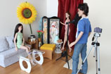domlouvají na průběhu dnešního fotografování. Děvčata nejsou v ateliéru poprvé,