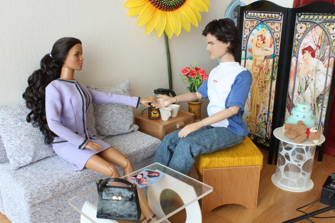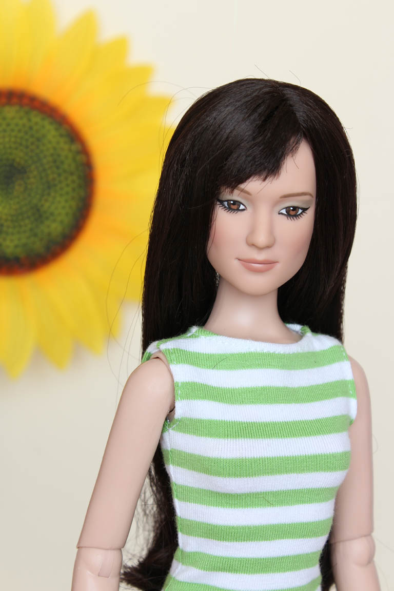 uzoučkým prýmkem, spodní top je originál Tonner. Botičky i kabelka jsou z dílny